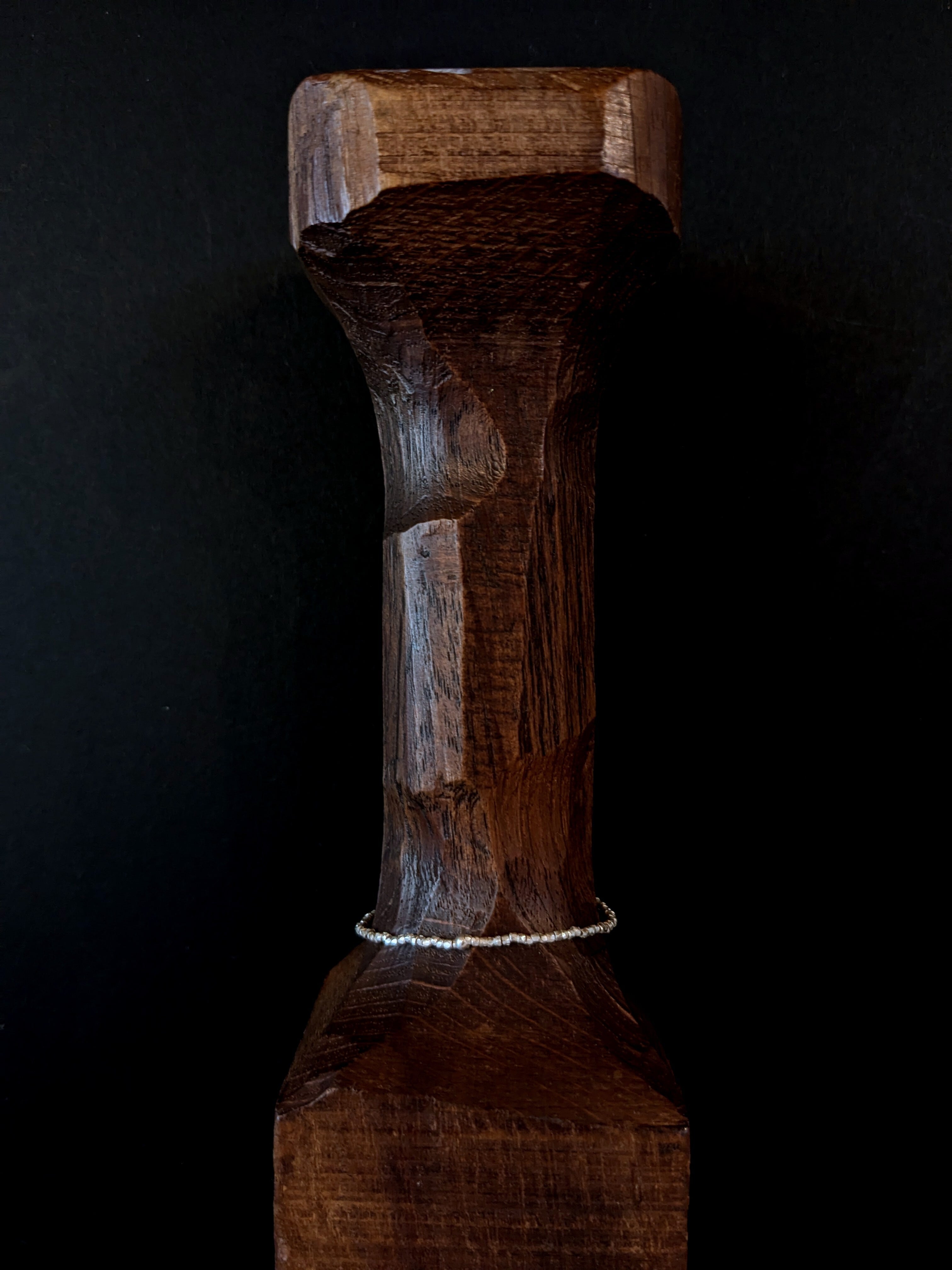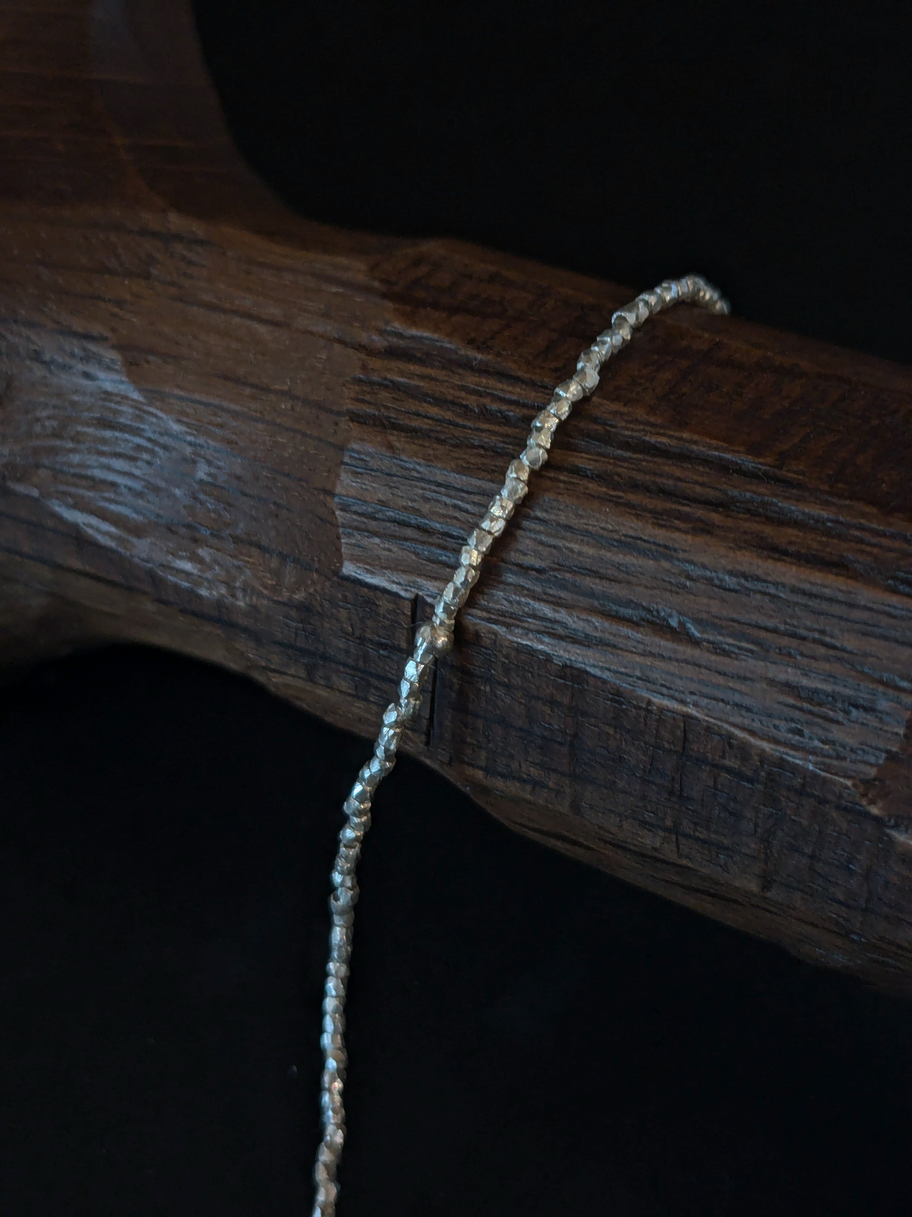 自然を敬う山間民族のカレン族が作り出すシルバービーズは、通常のシルバーに比べて銀の含有率が高めで、材質的にやや柔らかいのが特徴で、シルバーとは違うホワイトシルバーっぽい色味が柔らかく優しい印象に。