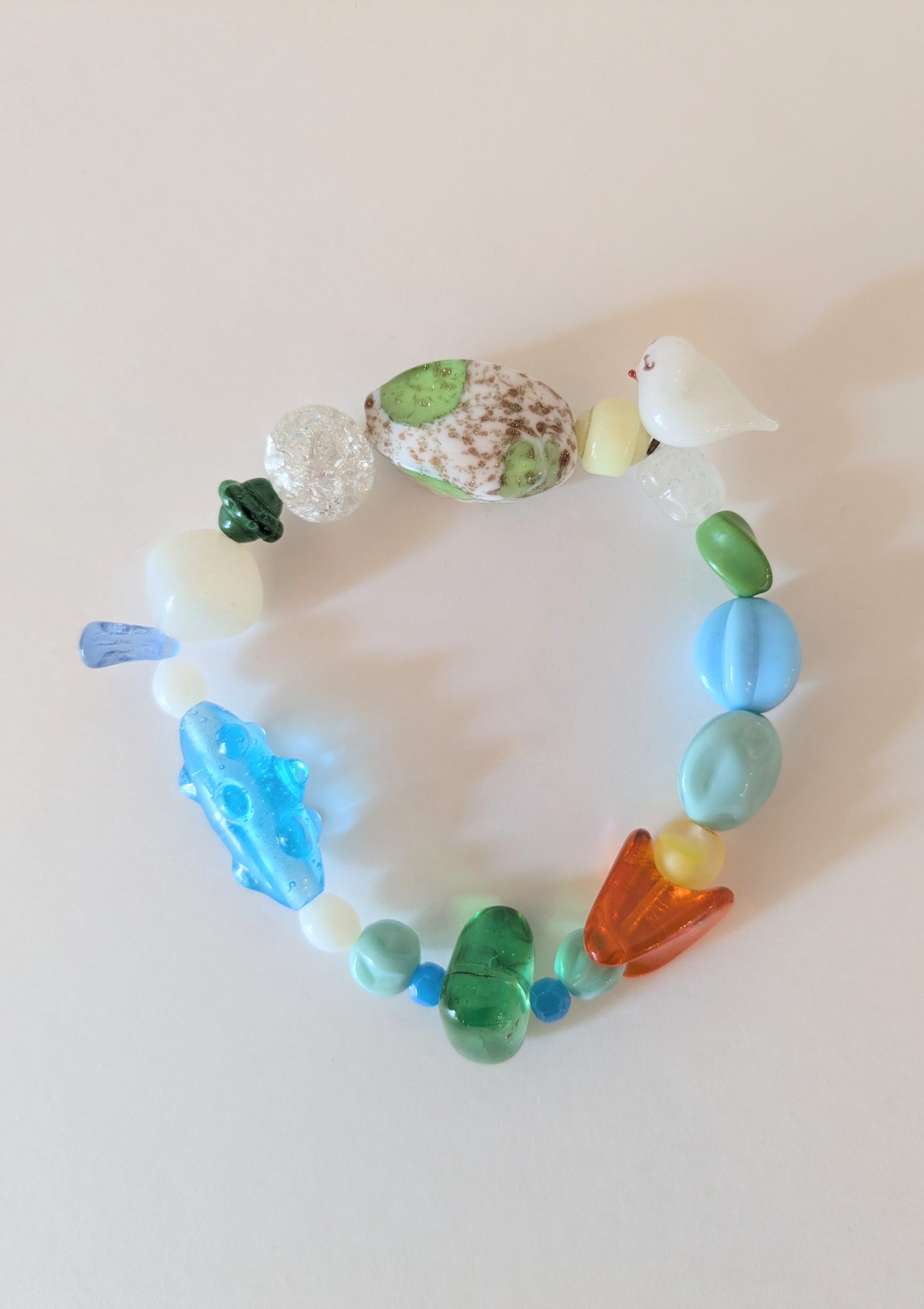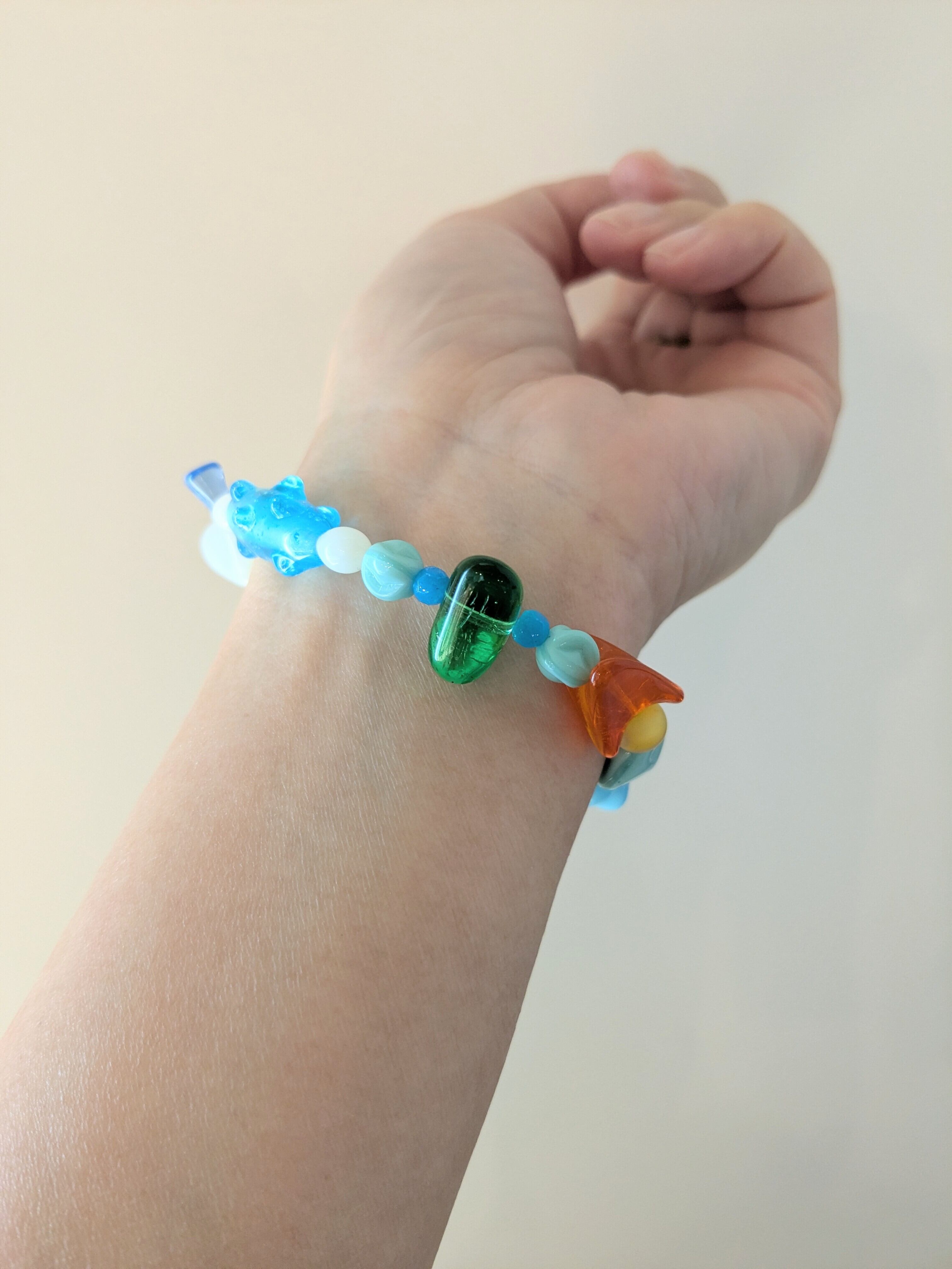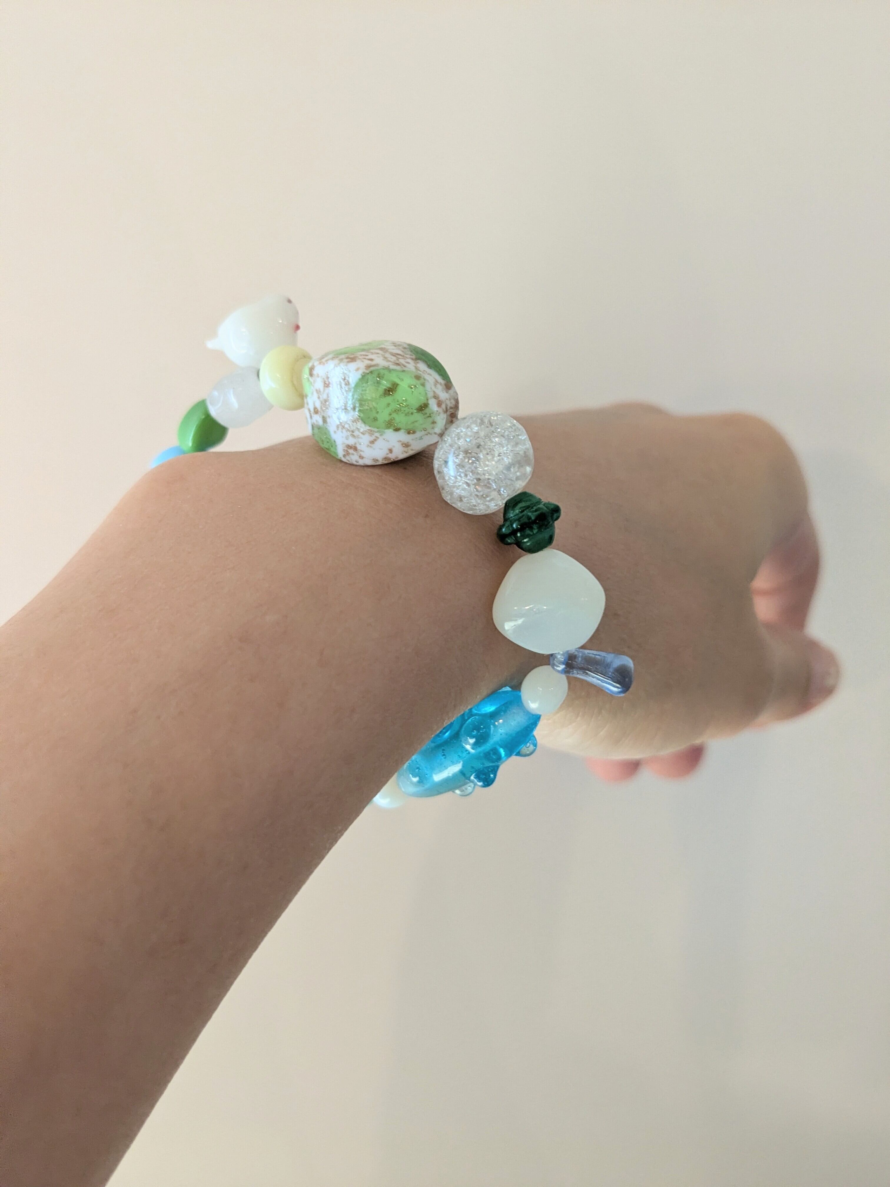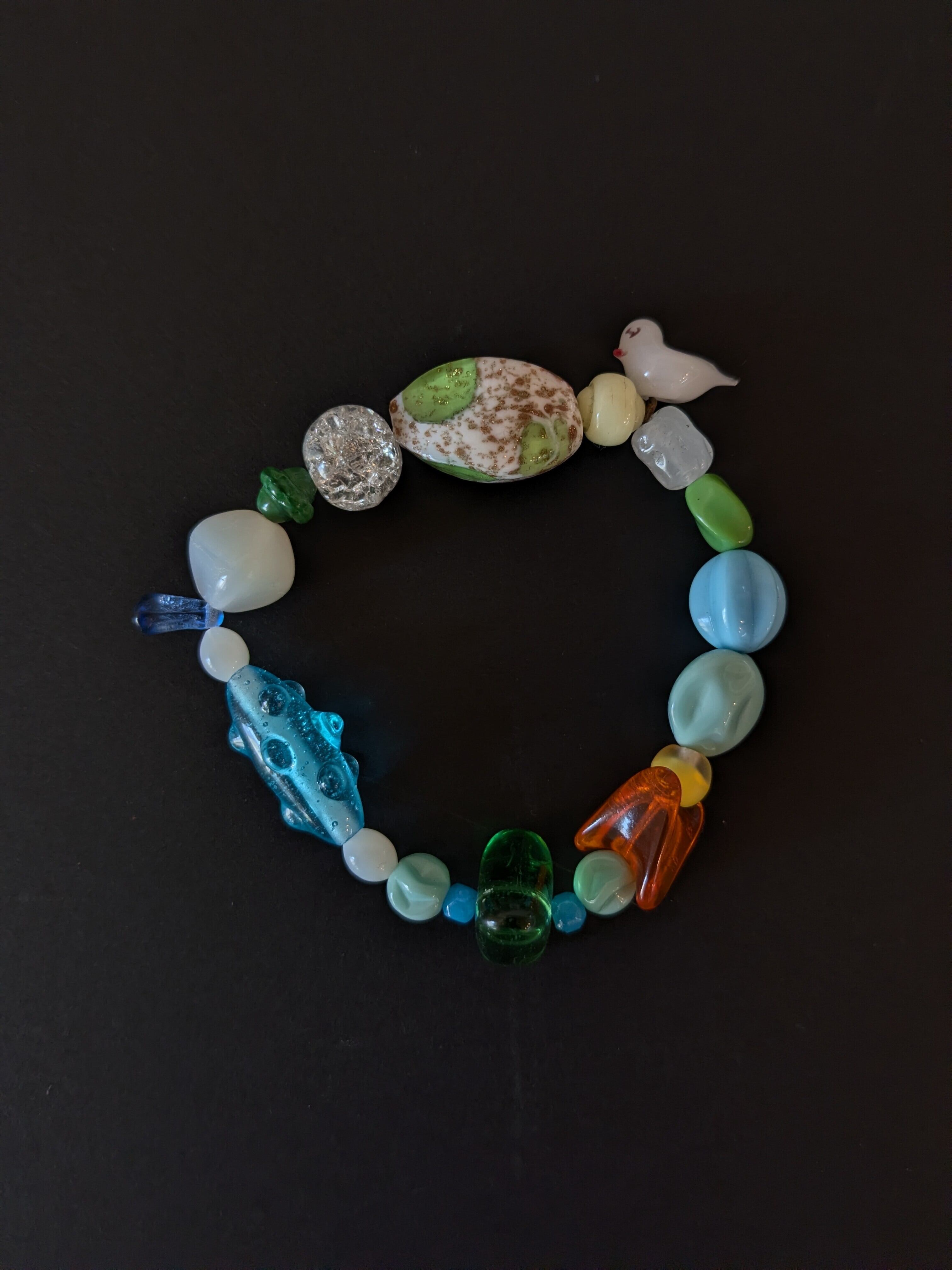 眺めているだけでも楽しくなる1点物のブレスレットです。