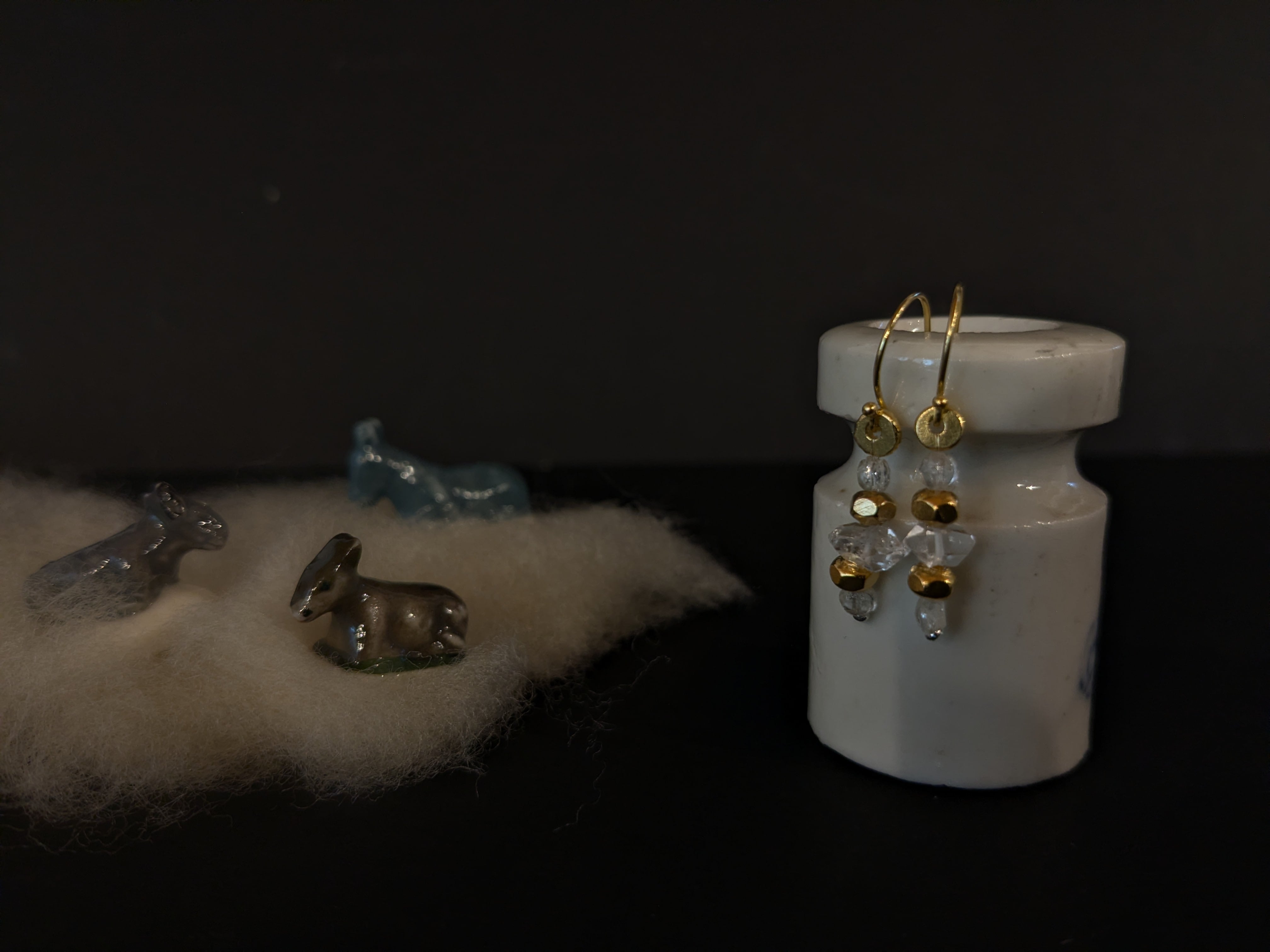 Herkimer Diamond(水晶)は、クリアな輝きと独特の形状が魅力的で、華やかさとナチュラルな風合いをどちらも感じていただけます。