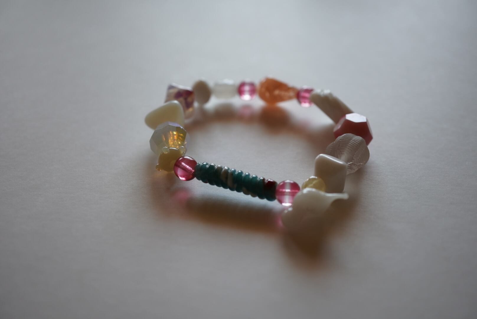 眺めているだけでも楽しくなる1点物のブレスレットです。