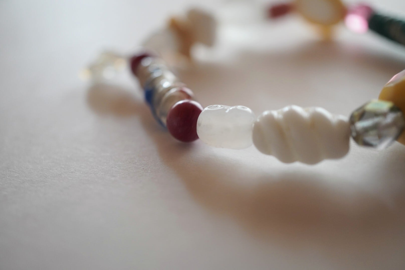 個々のビーズが持つ、ユニークな特徴や魅力を引き立てており、その色合いやデザインが手元を華やかに演出します。
