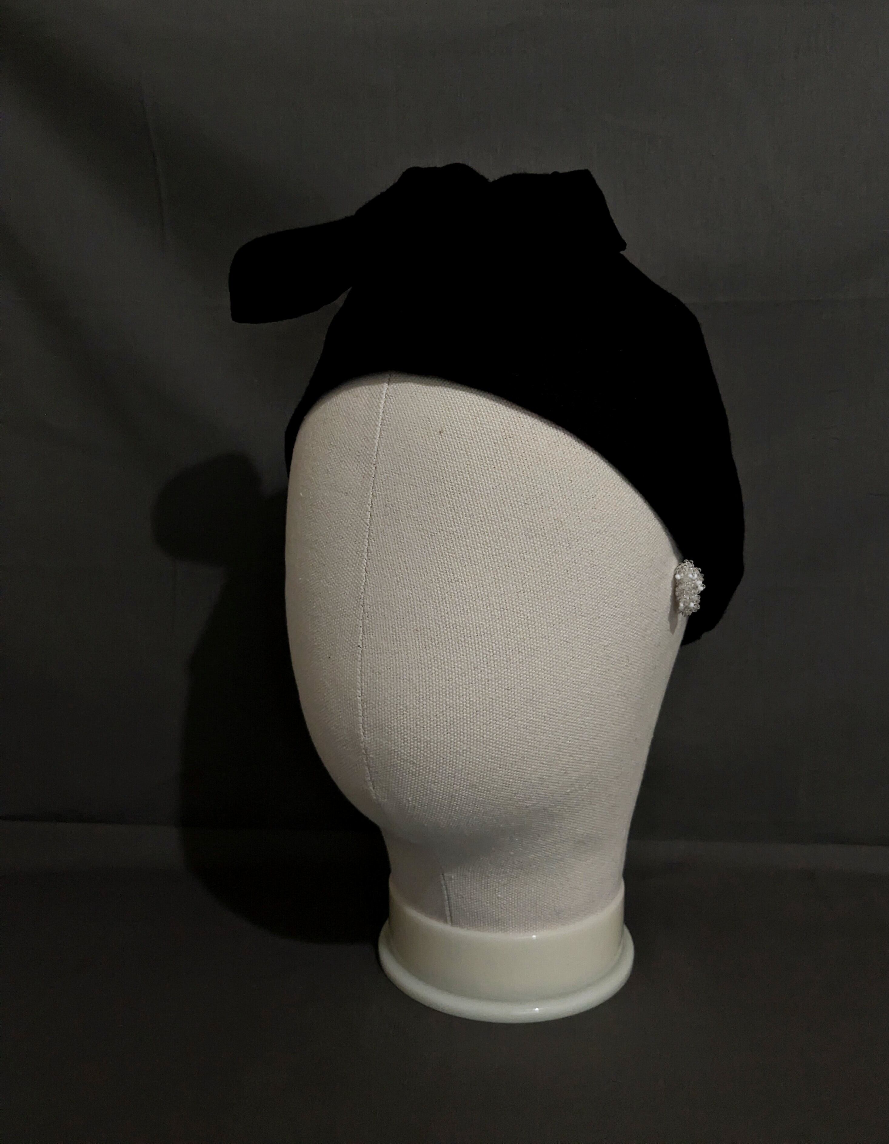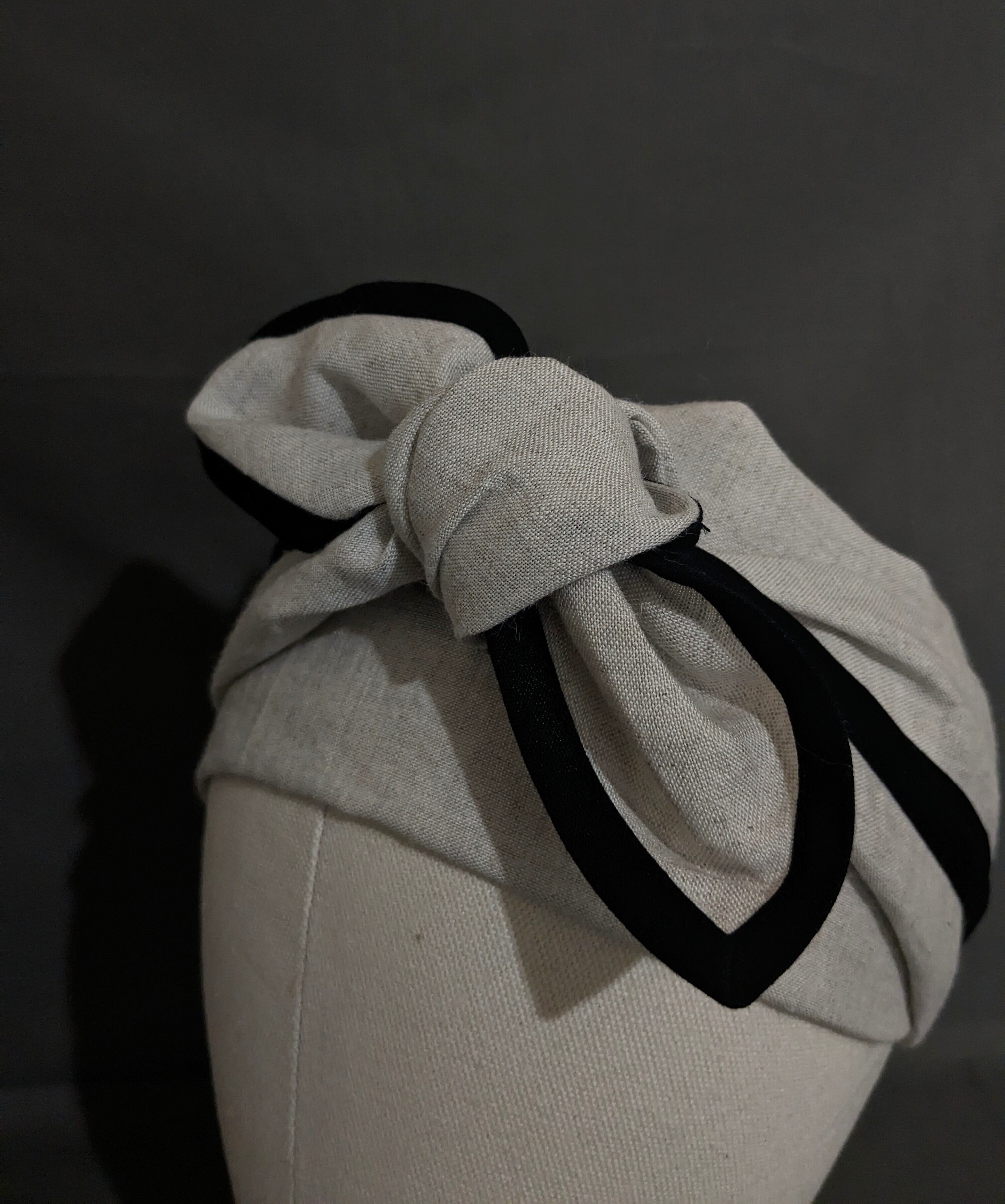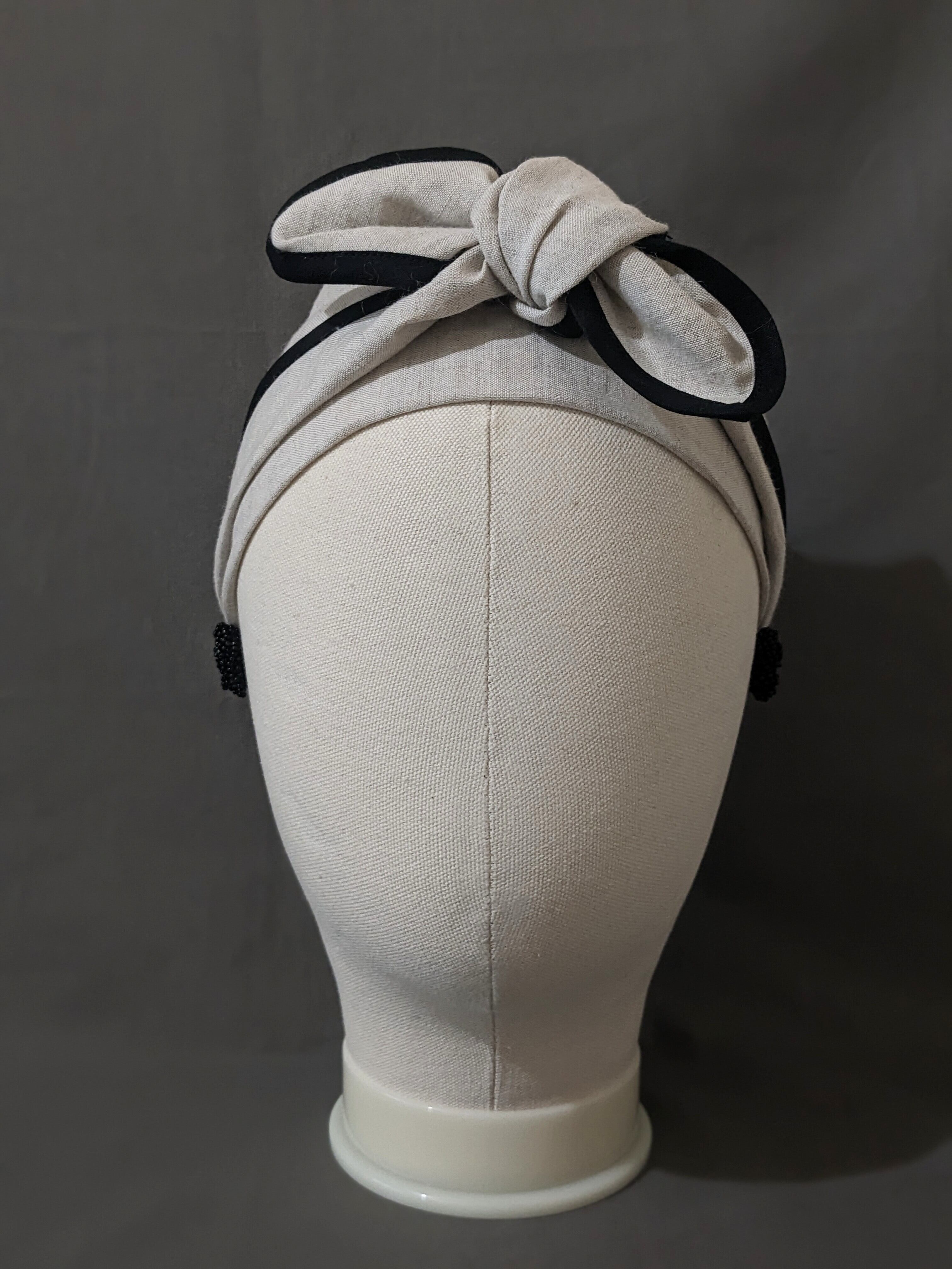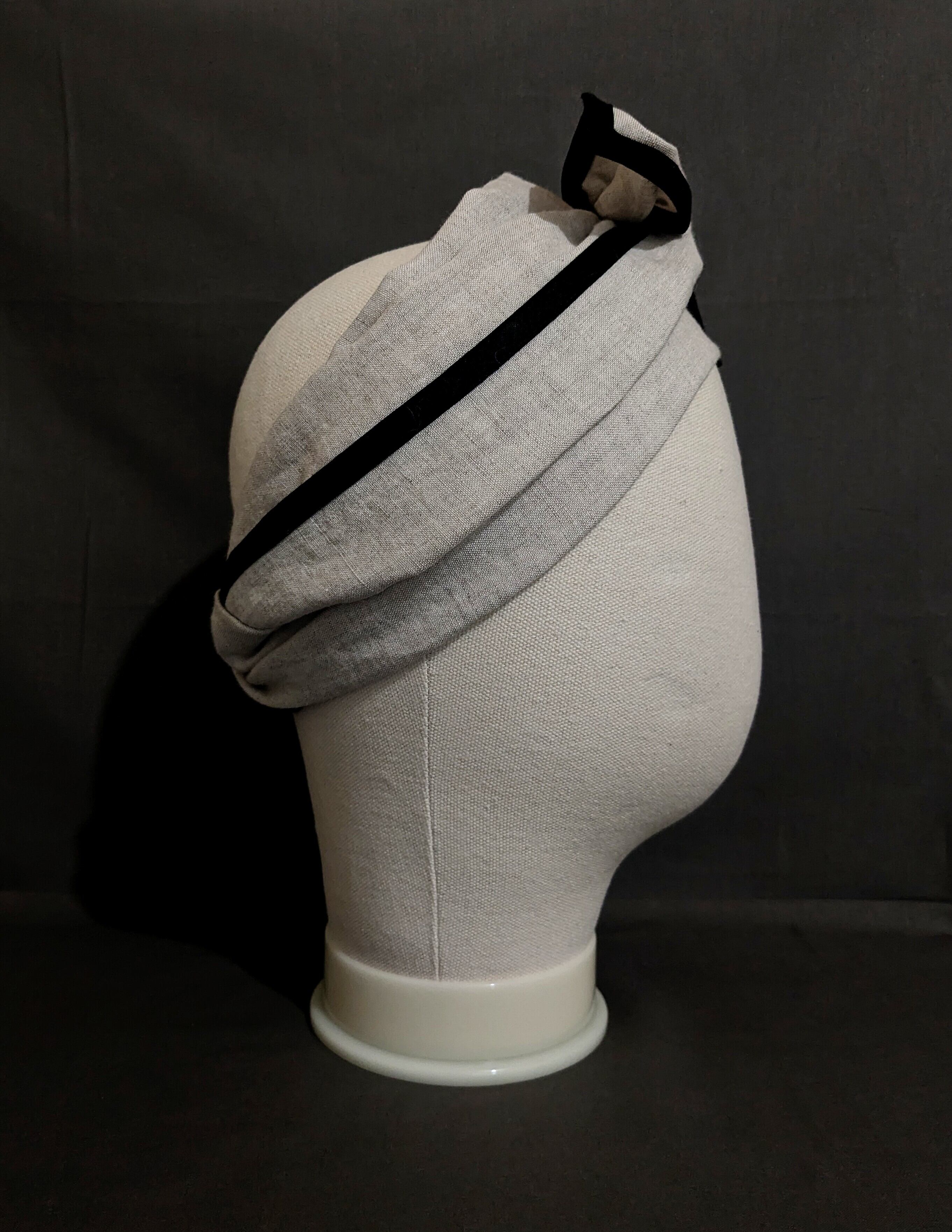 額上あたりからハチマキをするように後頭部で1回結びます。