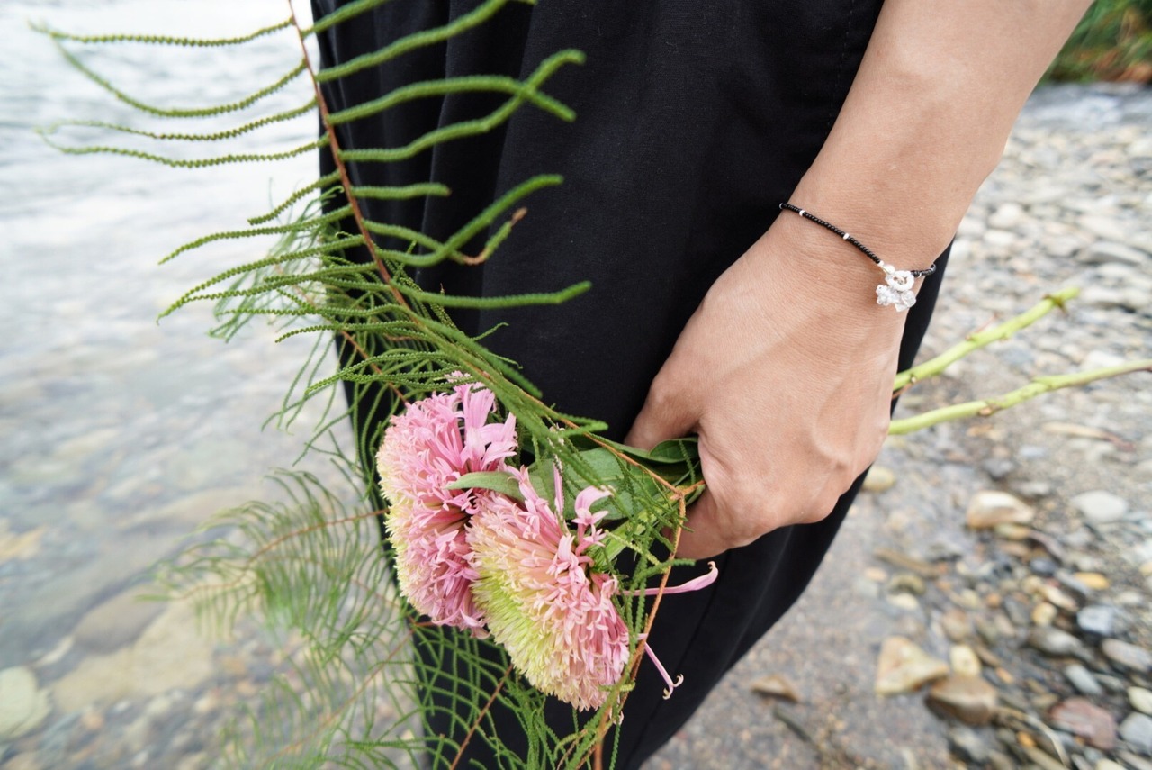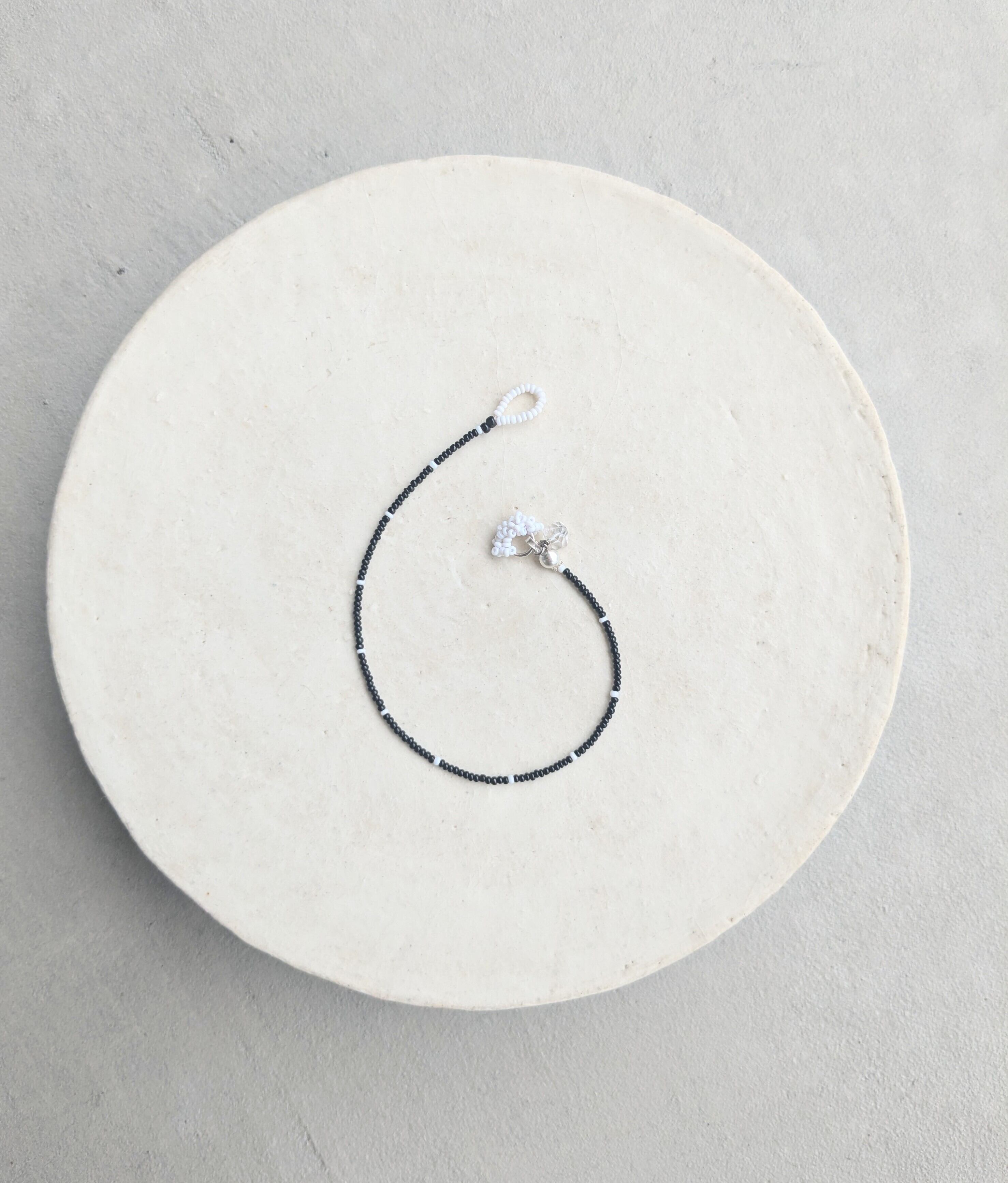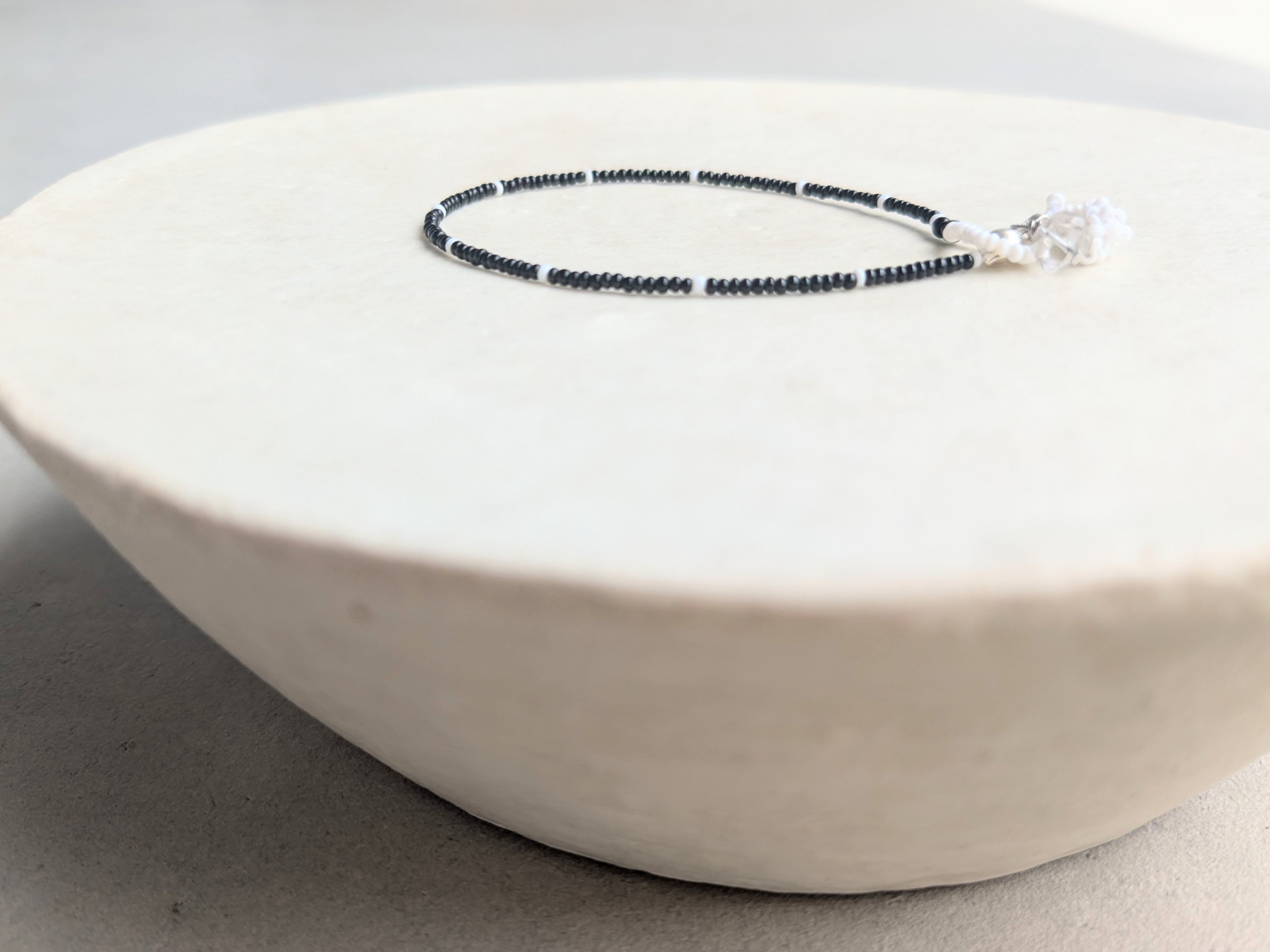 粒モチーフを通してからハーキマーダイヤモンドを通して頂くと身に着けやすいです