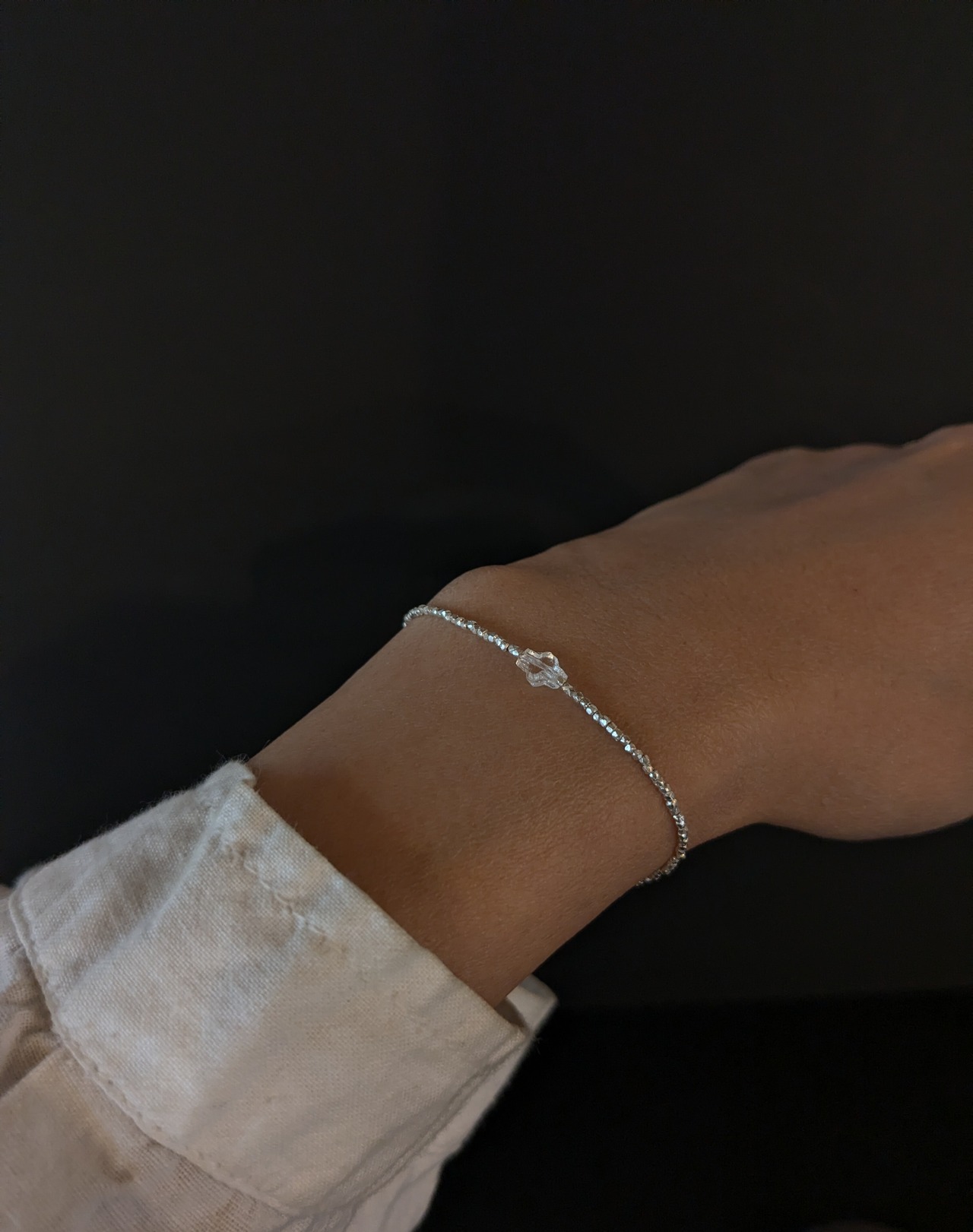 自然を敬う山間民族のカレン族が作り出すシルバービーズは、通常のシルバーに比べて銀の含有率が高めで、材質的にやや柔らかいのが特徴で、シルバーとは違うホワイトシルバーっぽい色味が柔らかく優しい印象に。
